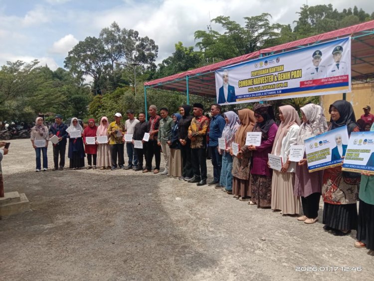 Pemkab Lima Puluh Kota menyerahkan bantuan bibit padi kepada 250 kelompok tani serta satu unit combine harvester sebagai upaya memperkuat ketahanan pangan, meningkatkan produktivitas pertanian, dan kesejahteraan petani daerah.