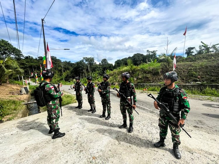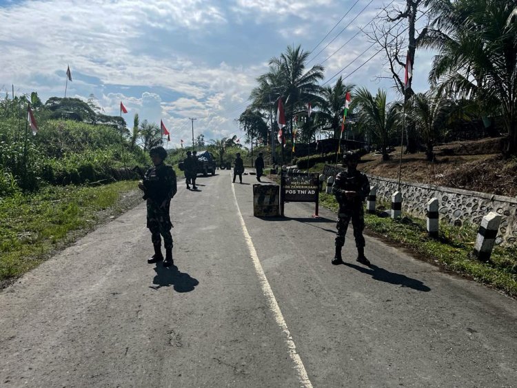 TOPIKPUBLIK.COM - Keerom - Satuan Tugas Pengamanan Perbatasan RI-PNG Sektor Utara Yonif 122/TS, yang berada di bawah naungan Korem 172/ATW, Pos Kalimo menggelar kegiatan pemeriksaan sepanjang jalan raya tepatnya, dalam rangka mencegah peredaran barang ilegal, tepatnya di Kp. Kalimo, Distrik Waris, Kabupaten Keerom, Papua, Minggu, (24/9/2023).