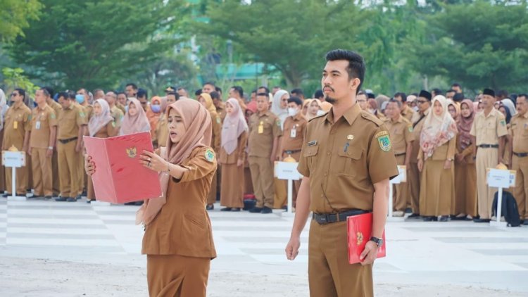 TOPIKPUBLIK.COM - BAGAN SIAPI-API - Kepala Dinas Komunikasi Informatika Statistik dan Persandian (Diskominfotik) Rokan Hilir (Rohil) Indra Gunawan, SE,MSi bertindak Sebagai Pembina Upacara, yang di pusatkan di kantor bupati Rohil Batu 6, Senin (31/7/2023) Bagansiapiapi.