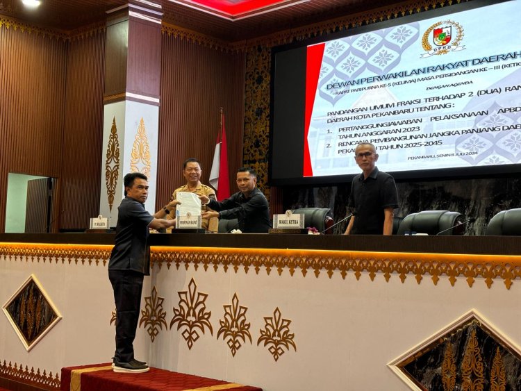 Rapat paripurna ini juga menegaskan pentingnya kolaborasi antara pemerintah dan legislatif dalam mewujudkan pembangunan yang berkualitas. Dengan adanya pandangan umum yang disampaikan oleh berbagai fraksi di DPRD, diharapkan Pemko Pekanbaru dapat menyusun langkah-langkah strategis dalam merencanakan pembangunan jangka panjang melalui RPJPD 2025-2045, serta mengelola keuangan daerah dengan lebih efisien.
