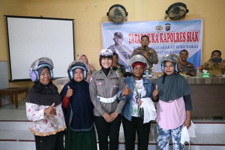 Kunjungi Masayarakat Sakai Kecamatan Kandis, AKBP Asep Sujarwadi, SIK, MSI Berikan Bantuan Helm SNI dan Alat alat Olahraga