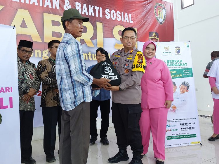 Kapolres Siak AKBP Asep Sujarwadi menjelaskan bahwa bakti kesehatan dan bakti sosial yang dilaksanakan di Polres siak antara lain, pengobatan gratis ( penyakit kutu kukit / scabies, pemeriksaan penyakit dalam dan kandungan ),pemeriksaan gigi gratis, donor darah, sunatan massal, pemeriksaan kesehatan penanganan stunting, dan pemberian bantuan sosial berupa paket sembako.