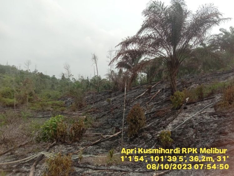 TOPIKPUBLIK.COM - Siak - (RIAU) - Polsek Sungai Mandau berhasil mengungkap pelaku pembakaran hutan dan lahan yang terjadi pada hari Sabtu tanggal 7 Oktober 2023 sekira pukul 23.00 Wib di Kampung Tasik Betung Kec. Sungai Mandau. Hal ini berawal dari informasi dari Tim RPK PT. Arara Abadi Distrik 1 Melibur yang menerangkan bahwa pelaku pembakaran hutan dan lahan tersebut ikut memadamkan api karena panik saat lahan yang dibakarnya meluas. Kemudian selanjutnya Tim dari Polsek Sungai Mandau melakukan pengecekan TKP dan mengumpulkan alat bukti selanjutnya pada hari Rabu tanggal 11 Oktober 2023 pelaku pembakaran lahan yang berinisial H Bin S ditemukan di rumahnya