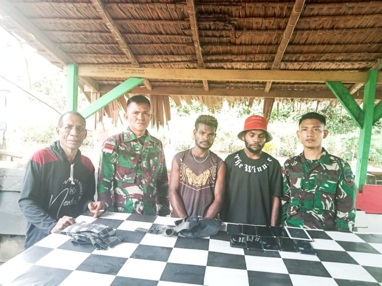 Satgas Yonif 122/TS Ringkus 2 Orang Tak Di Kenal Mengantisipasi adanya Penyelundupan Barang Ilegal Di Perbatasan Kampung Scofrolama