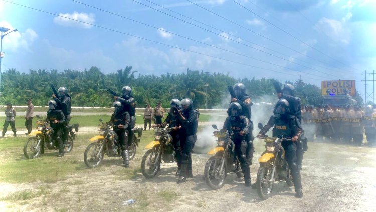TOPIKPUBLIK.COM - SIAK - RIAU - Sebanyak 165 (Seratus enam puluh lima) Personil Polres Siak dan Polsek Jajaran melaksanakan kegiatan latihan Pengendalian Massa ( Dalmas ) di Lapangan Depan Mako Polres Siak, Kamis (14/09/2023).