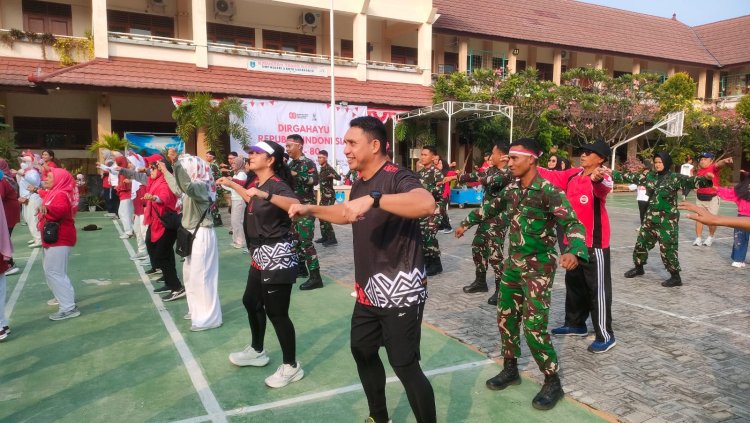 Satgas TMMD 125 Kodim 0735/Surakarta meriahkan HUT RI ke-80 dengan gerak jalan dan senam bersama warga Karangasem, perkuat semangat kebersamaan.