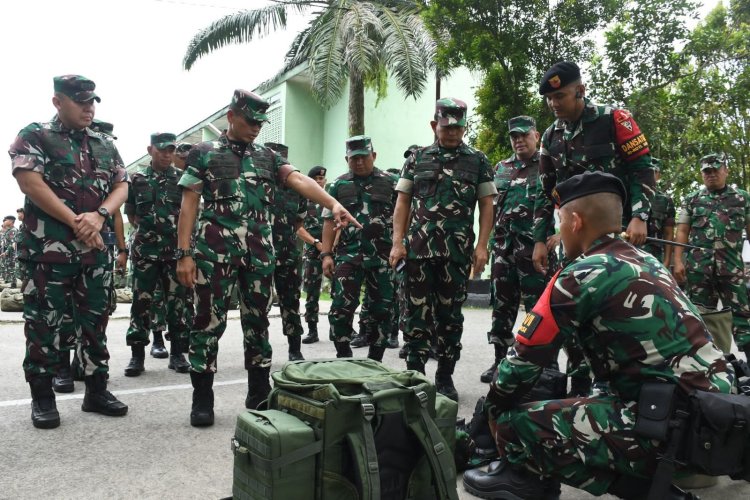 TOPIKPUBLIK.COM - Sunggal - Asisten Operasi (Asops) Panglima TNI, Mayjen TNI Muhammad Nur Rahmad, SIP, didampingi Kasdam I/BB, Brigjen TNI Refrizal melakukan Pemeriksaan Kesiapan Operasi (Riksiapops) Satgas Yonkav 6/NK yang akan mengemban tugas operasi pengamanan perbatasan (Pamtas) RI-RDTL, Selasa (12/9/2023).