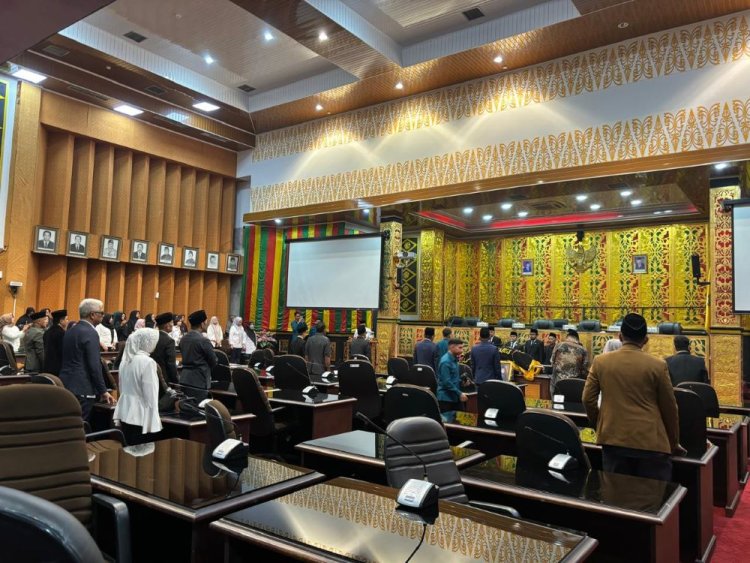 TOPIKPUBLIK.COM - PEKANBARU - DPRD Pekanbaru Gelar Upacara Pelepasan Jenazah Anggota DPRD Heri Setiawan SH, DPRD Kota Pekanbaru menggelar paripurna upacara pelepasan jenazah almarhum Heri Setiawan SH, Anggota DPRD Kota Pekanbaru dari Fraksi Demokrat, masa jabatan 2019-2024. Upacara ini berlangsung di Ruang Rapat Paripurna Gedung Balai Payung Sekaki, pada Rabu (3/4/2024).