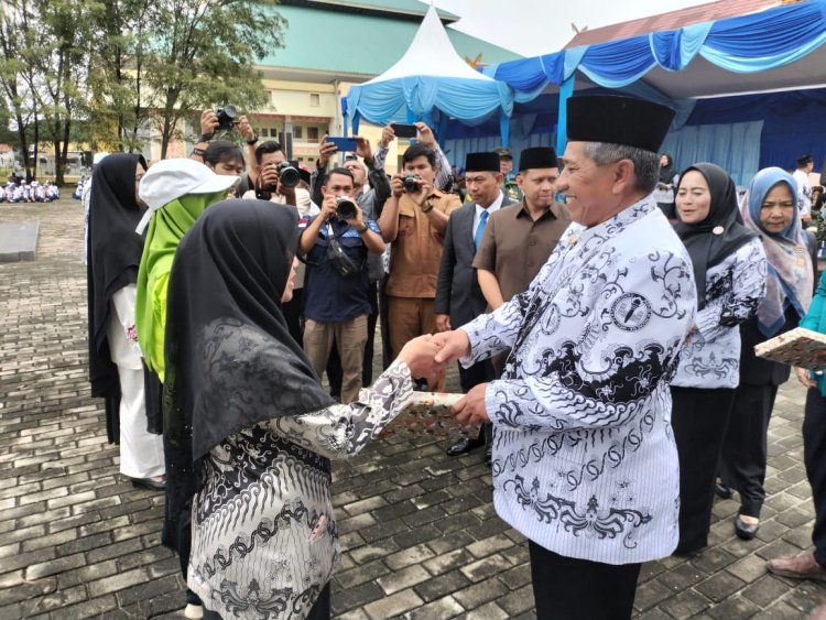 Camat Tualang Mursal.S.Sos dalam sambutannya membacakan sambutan tertulis Menteri Pendidikan Nasional dengan Tema “Transformasi Guru Bergerak Bersama, Rayakan Merdeka Belajar Wujudkan Indonesia Maju.”