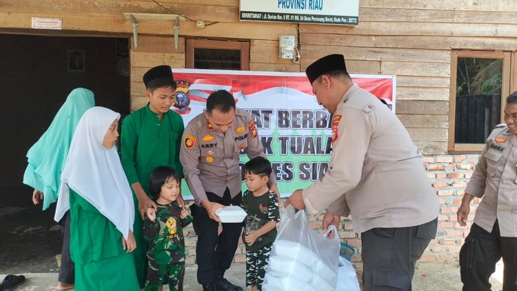 Jumat Berkah berbagi yang dilaksanakan oleh Kapolsek Tualang Kompol Arry Prasetyo SH.MH beserta Panit Binmas , Bhabinkamtibmas Kp Perawang Barat dan Kasi Humas tersebut berlangsung di sekitar wilayah Kecamatan Tualang yaitu berlokasi Yayasan Berkah Ikhlas Hati dan Pemulung Sampah.