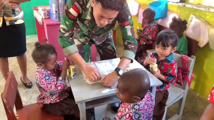 Tak hanya berbagi makanan, Pos Jagiro juga aktif terlibat dalam kegiatan edukatif lainnya. Prajurit TNI turut memberikan bantuan tenaga pendidik (gadik) melalui kegiatan senam bersama dan penguatan wawasan kebangsaan bagi anak-anak usia dini. Kegiatan ini tidak hanya mempererat hubungan emosional antara TNI dan masyarakat, tetapi juga menanamkan semangat cinta Tanah Air sejak dini kepada generasi penerus bangsa di pelosok negeri.