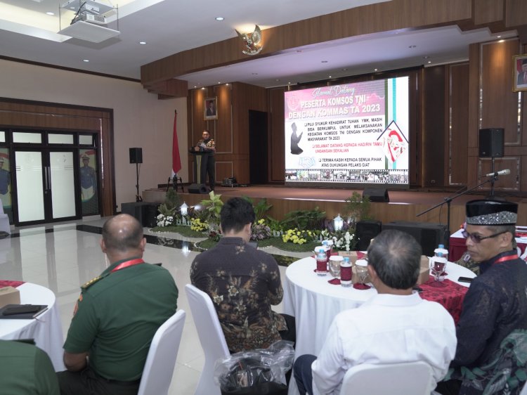 Kegiatan Komunikasi Sosial TNI dengan Komponen Masyarakat merupakan bagian dari metode pembinaan teritorial yang bertujuan agar terpeliharanya komunikasi dan silaturahmi dengan Tokoh Masyarakat, Tokoh Agama, Tokoh Adat, Tokoh Pemuda, Mahasiswa, Pelajar, Ormas, LSM dan Mitra TNI serta terjalin sinergitas dalam mewujudkan ruang, alat dan kondisi juang yang tangguh, untuk kepentingan pertahanan negara maupun dalam membantu pemerintah dalam rangka membina karakter bangsa Indonesia sesuai dengan nilai-nilai Pancasila, penguatan pertumbuhan ekonomi dan menyukseskan tahapan serta penyelenggaraan Pemilu Tahun 2024.